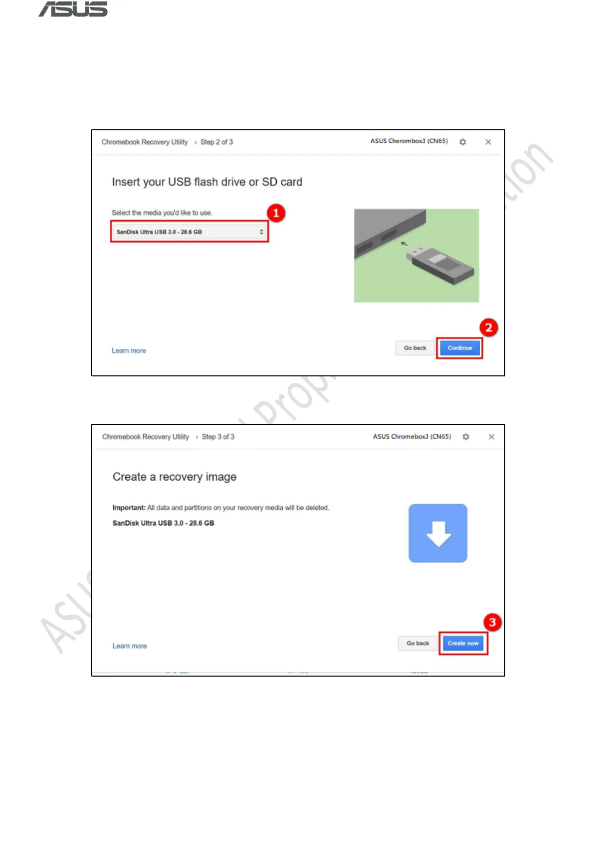 7) Click USB Flash inserted, and click Continue. Click Create now*. Click Done to