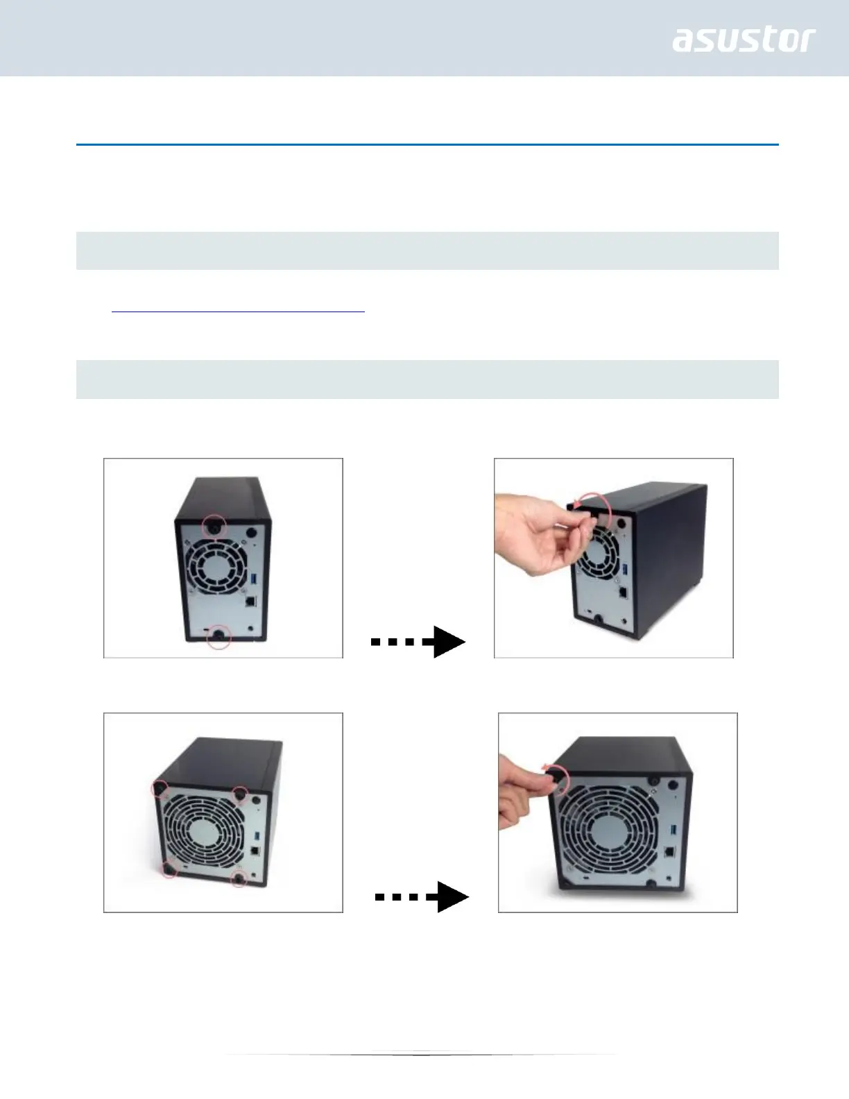 1. Remove the screws from the rear of the NAS as shown in the graphic below.