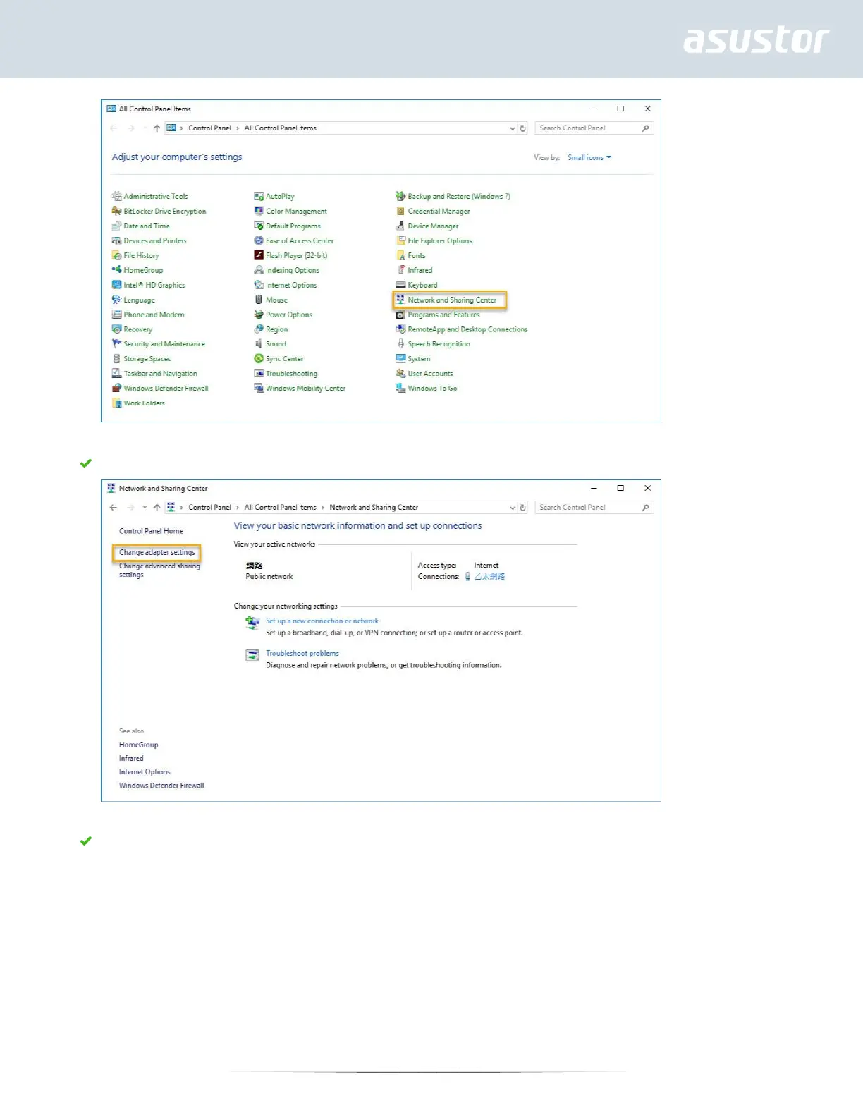 Click on [Change adapter settings] in the left hand panel.