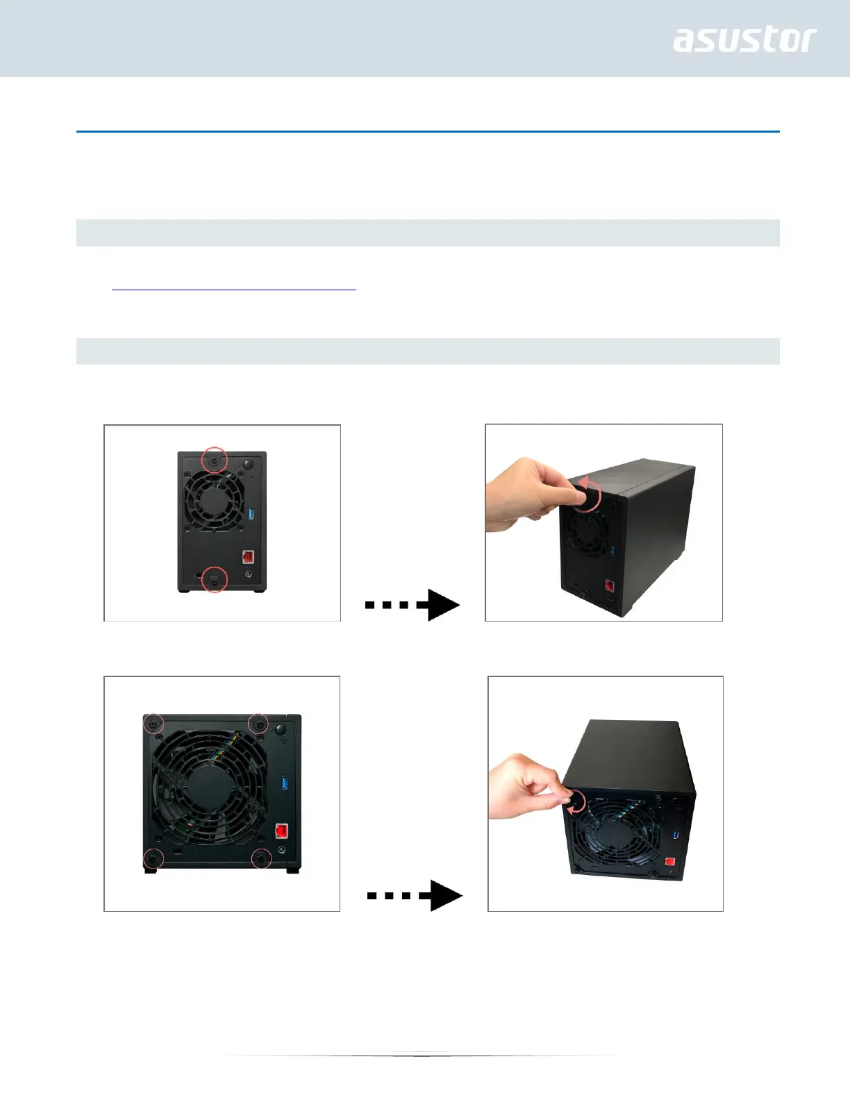 1. Remove the screws from the rear of the NAS as shown in the graphic below.