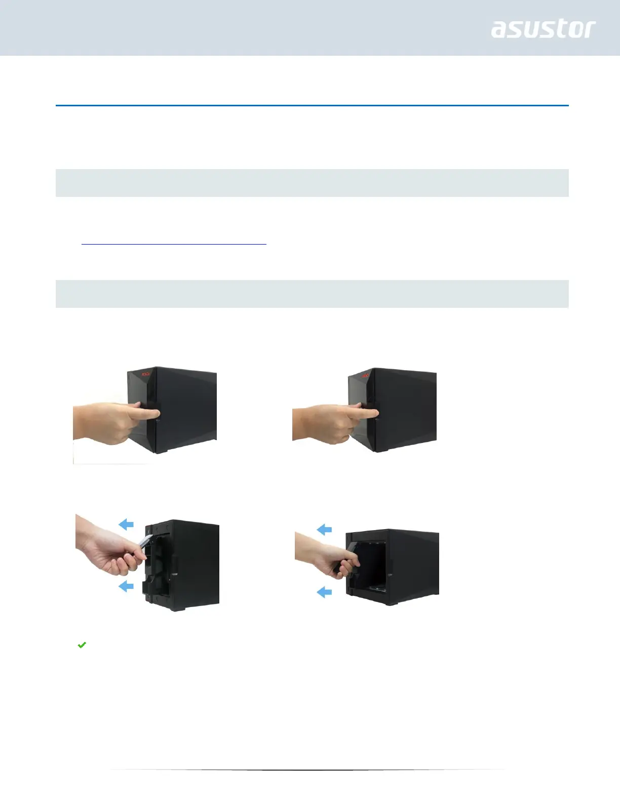 hard drive into the tray, align and insert the rails to secure the hard drive and insert it into the NAS.
