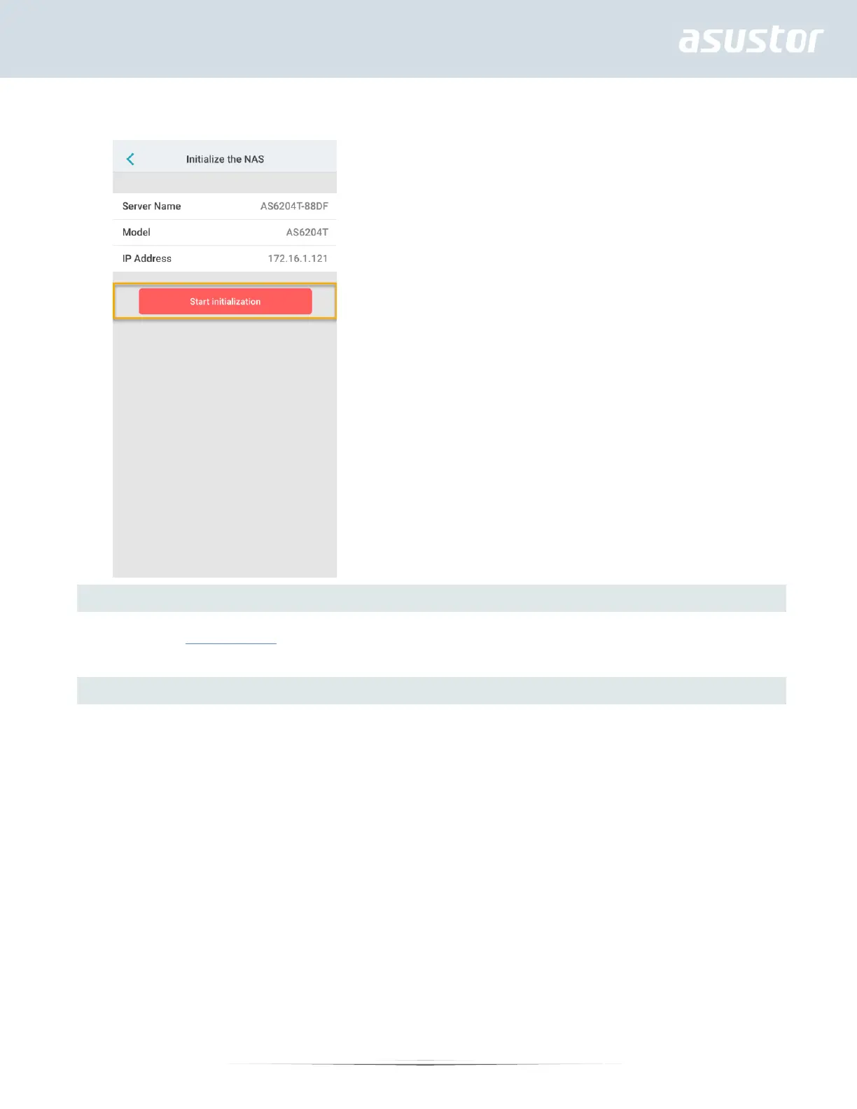 6. Select [Start Initialization] to begin installation. Follow the prompts and instructions to complete the configuration