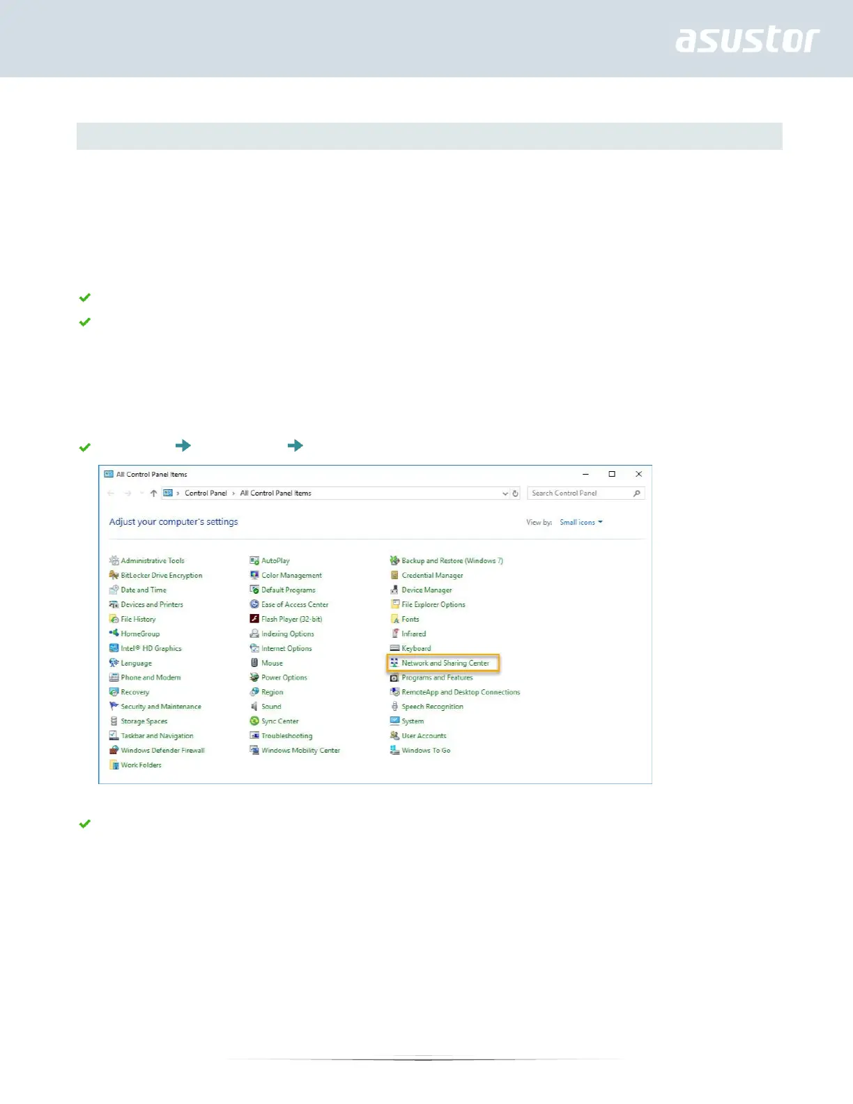 Select [Start] [Control Panel] [Network and Sharing Center]