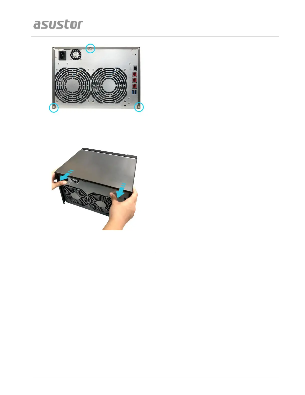 Grip the cover from both sides with two hands and then gently push towards the rear of the NAS to