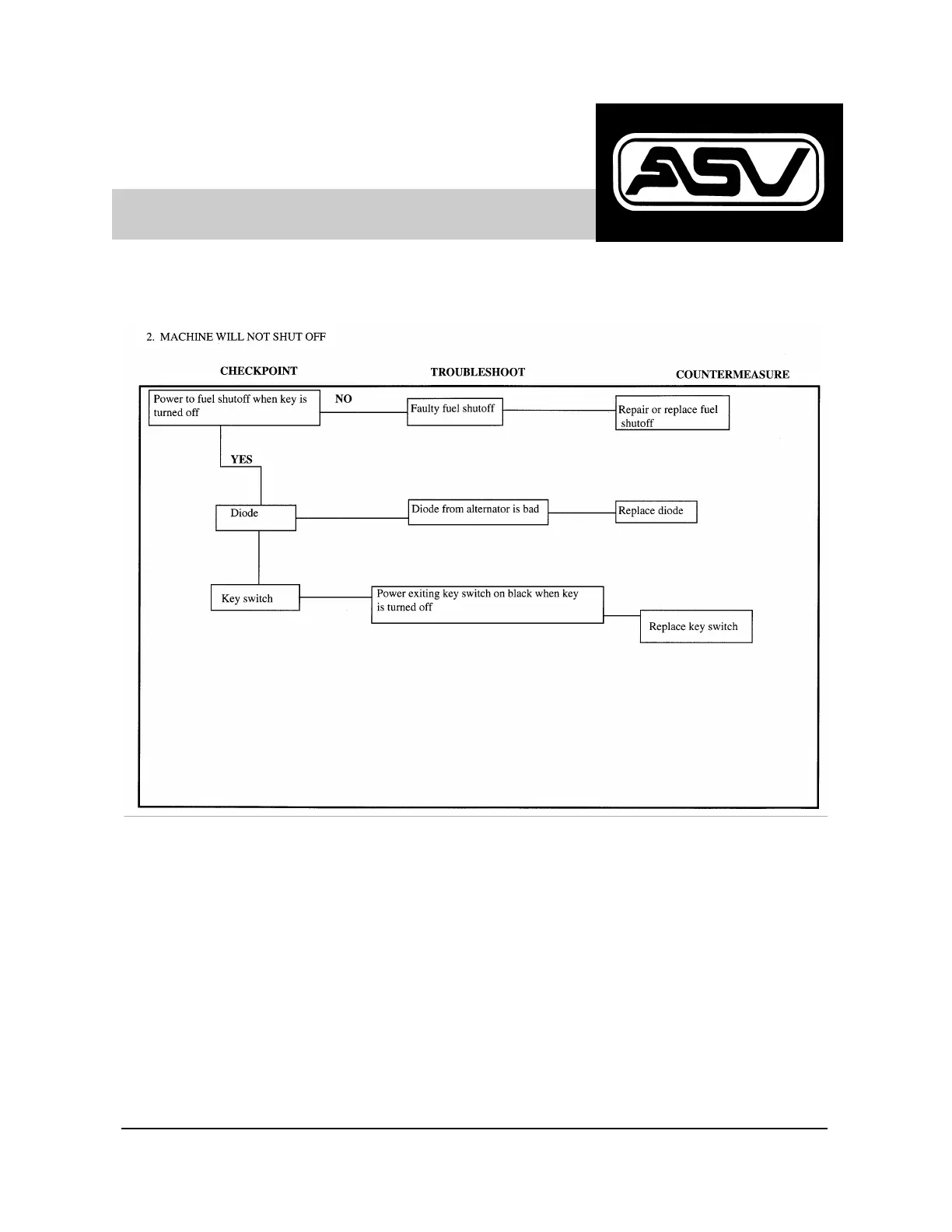 ASV 2810 - TROUBLESHOOTING (ELECTRICAL): SHUTDOWN ISSUES; MACHINE WILL NOT SHUT OFF