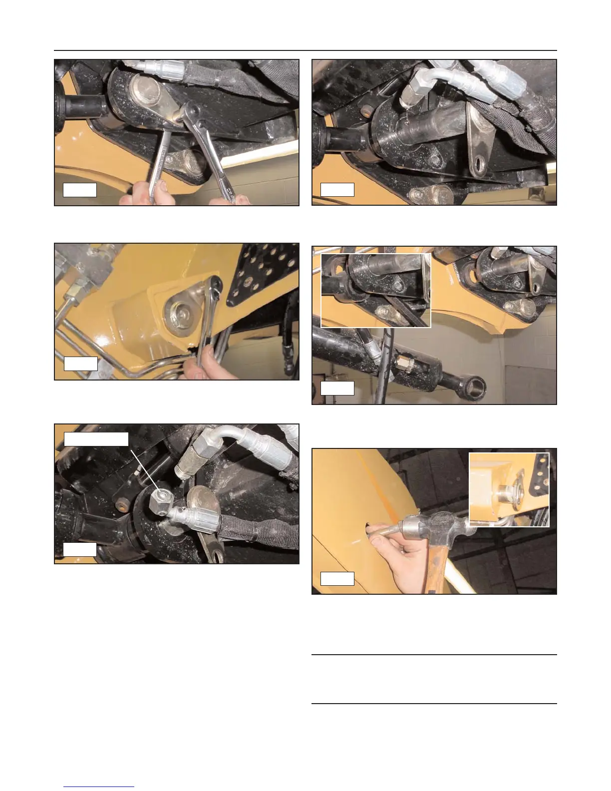 7. Use a pry bar to slide the lower pin out of the cylin-