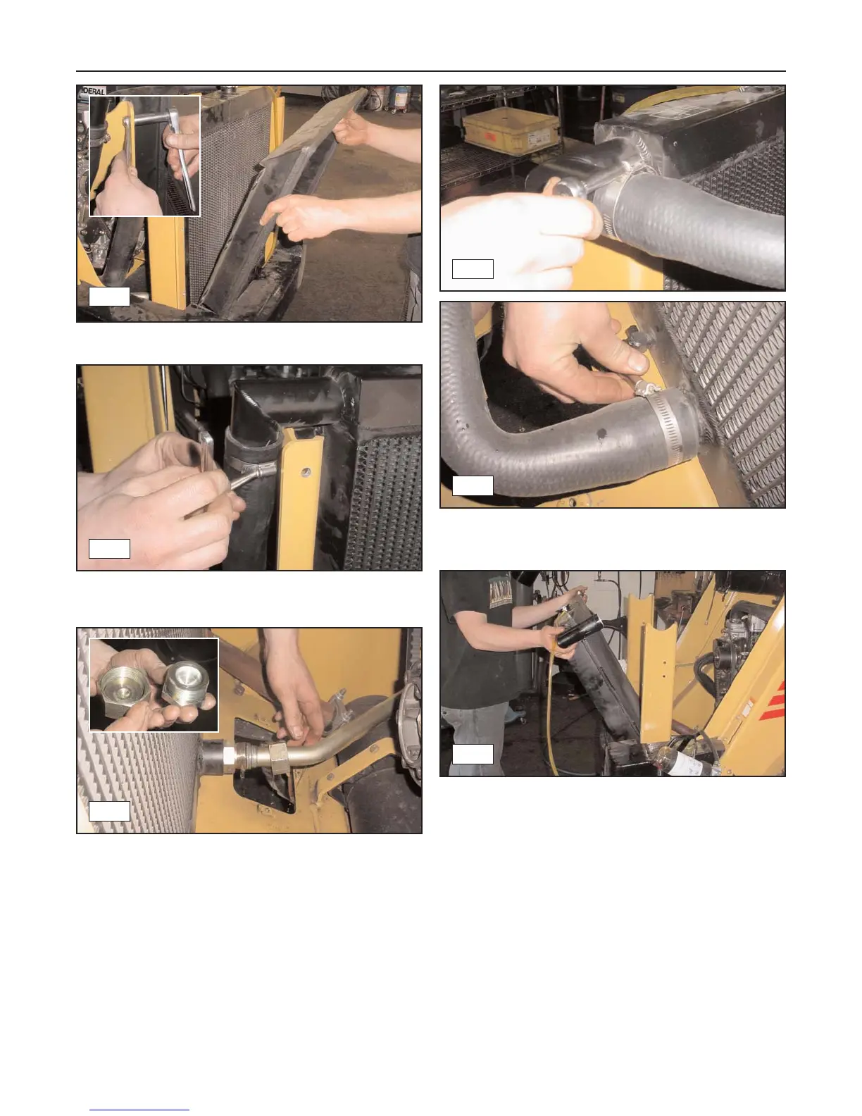 5. Remove the upper hydraulic cooler hose. Cap or
