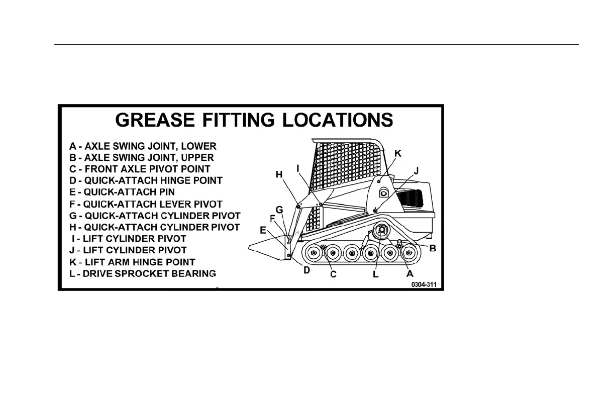 can be found on the right side of the machine. Lubricate all grease fittings daily, prior to operation.