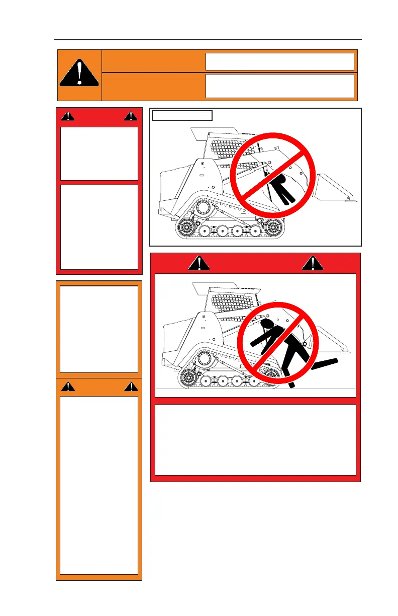 Keep away from tracks while machine is in motion.