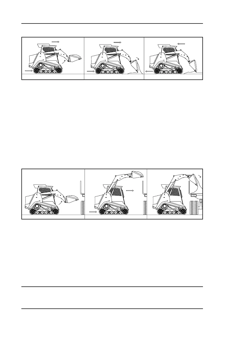 1. Moving forward, raise the lift arms as you tilt the bucket slowly