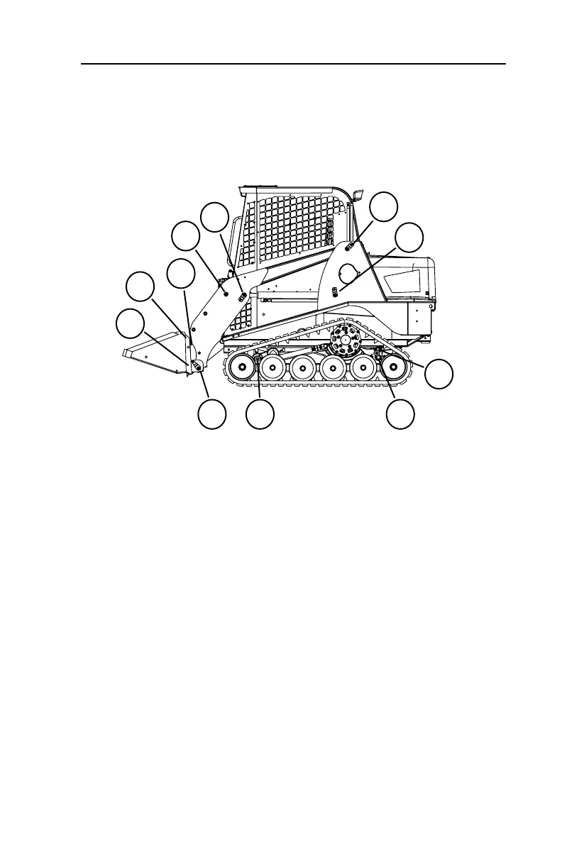 The illustration below shows the location of grease points found on the left side of