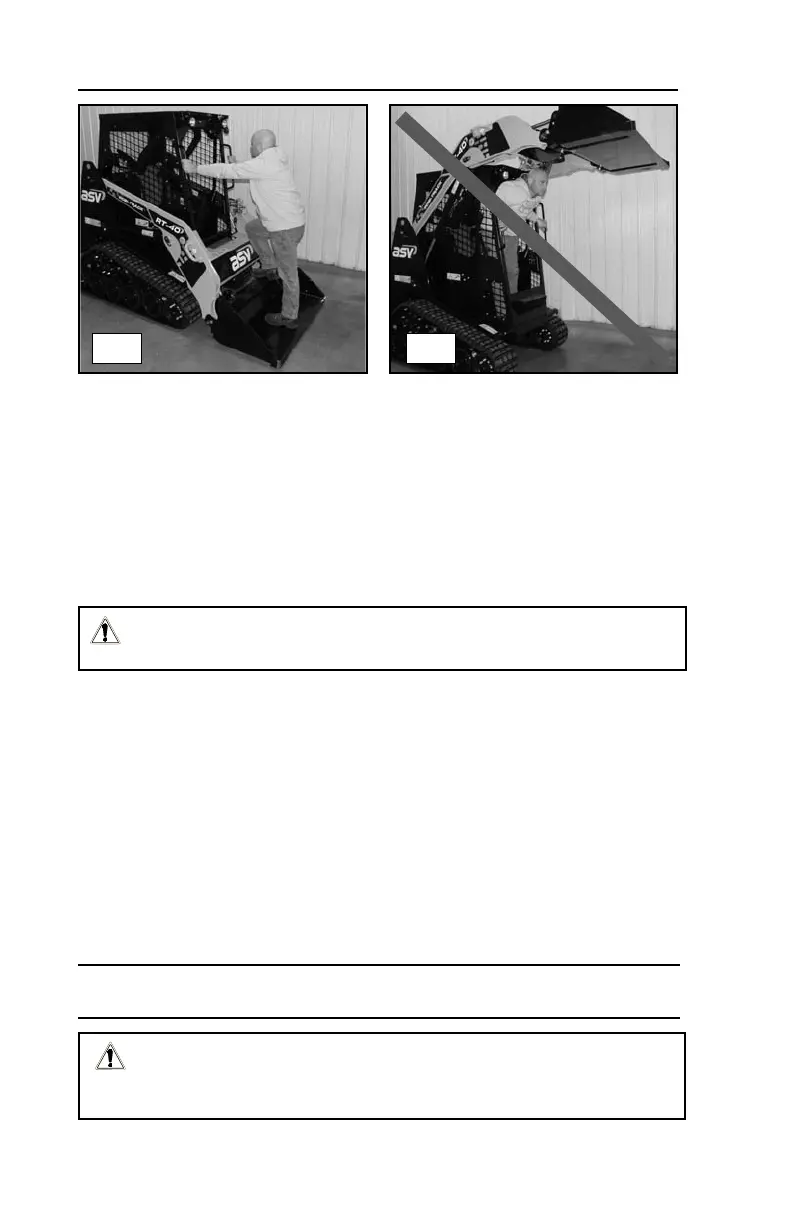 1. Enter machine with lift arms all the way down. Maintain three points of