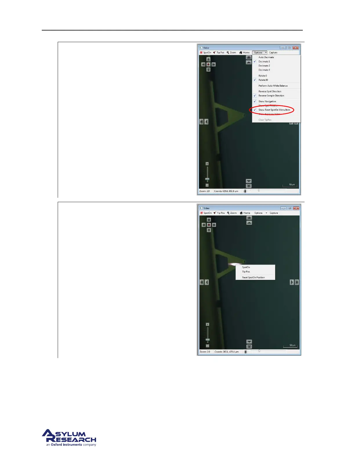 • Click on “show reset spot on menu