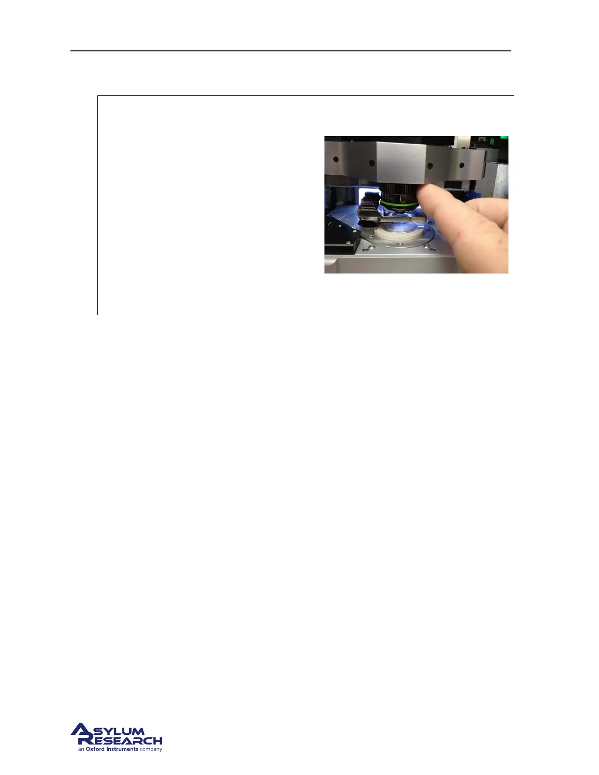 2. Focus on the cantilever as you would normally do for air imaging, outlined in more detail in 4.3.