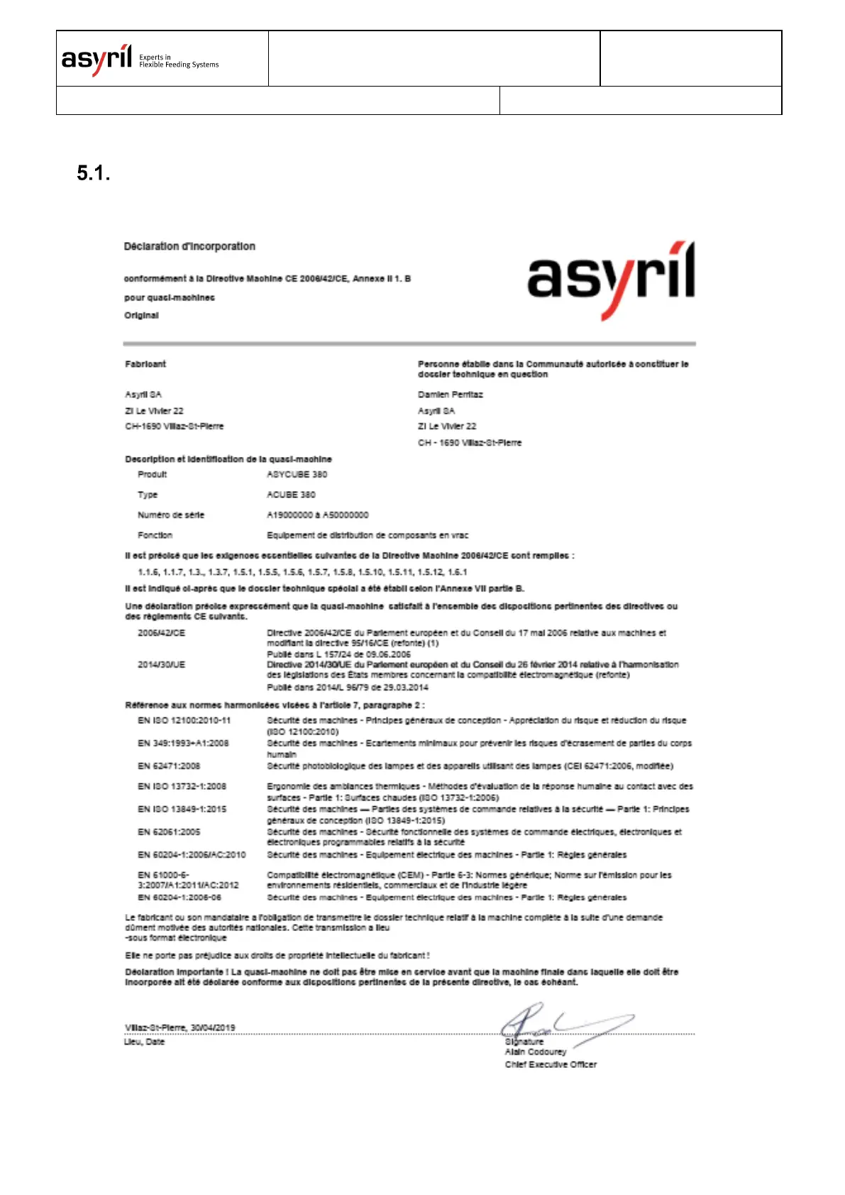 Asyril Asycube 380 - 5 Annexes; Ce Certificate
