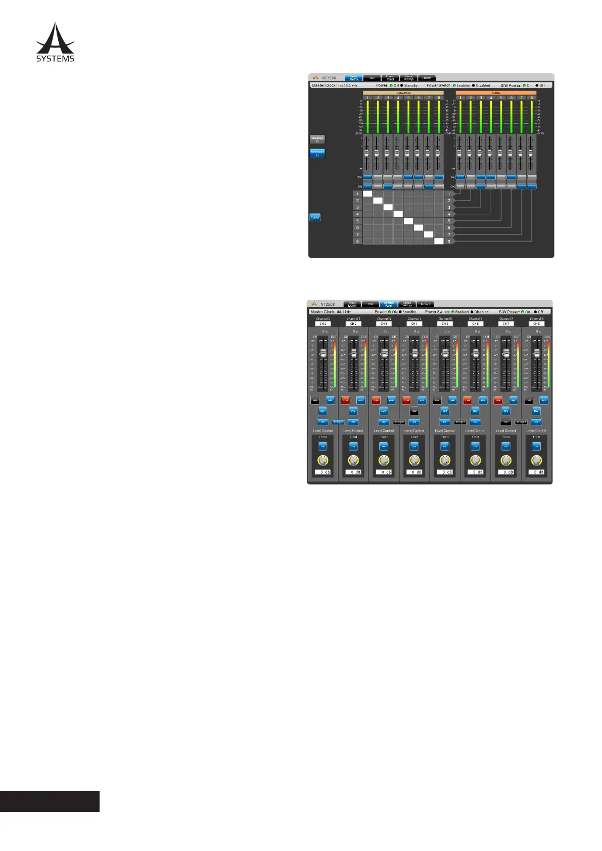 Front Level Control: The Control Panel page also includes an on/off button for the front-panel level controls. These can