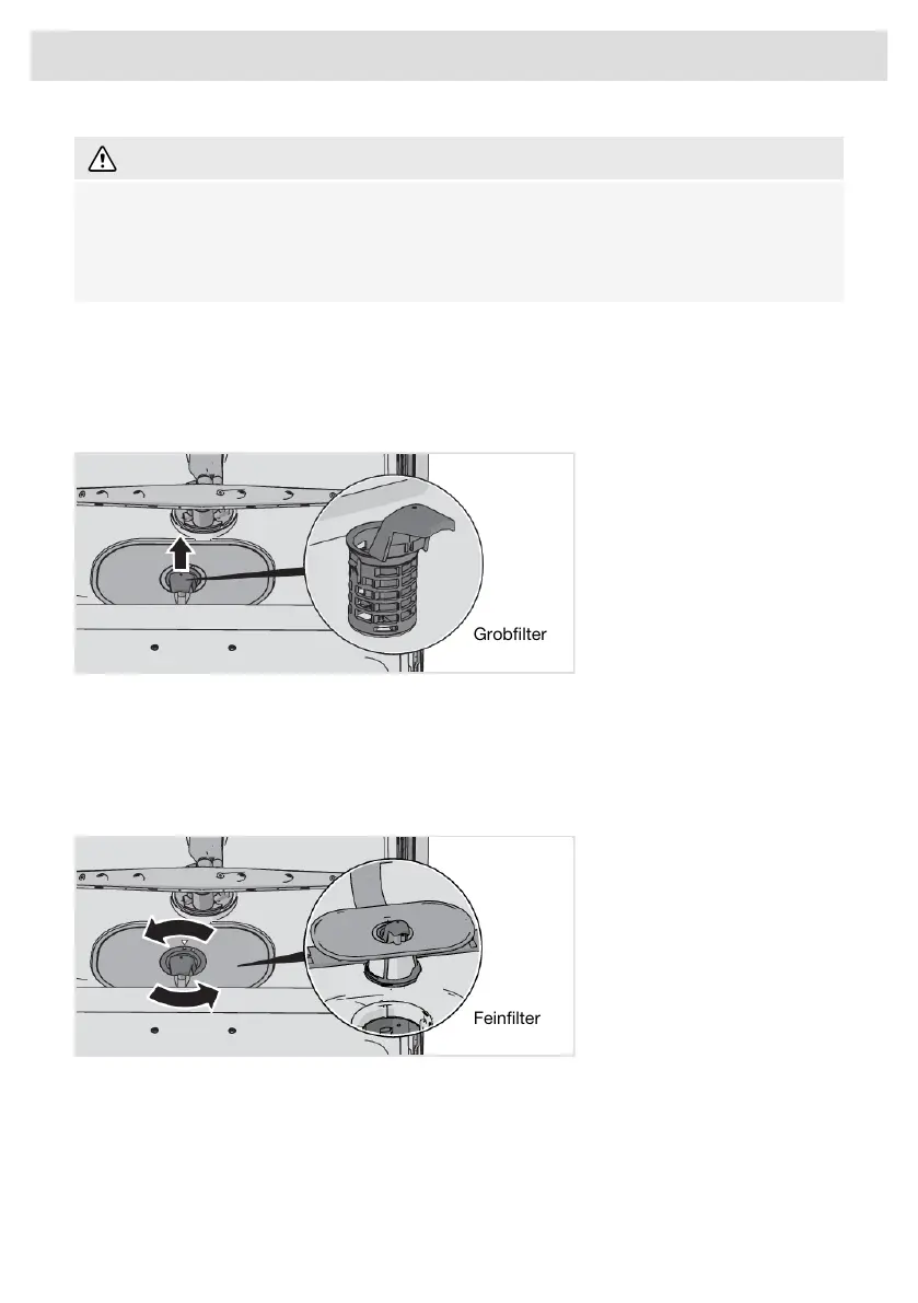 Der Grobfilter sammelt große Speisereste auf, die nicht durch die Ablaufpumpe passen. Leeren Sie
