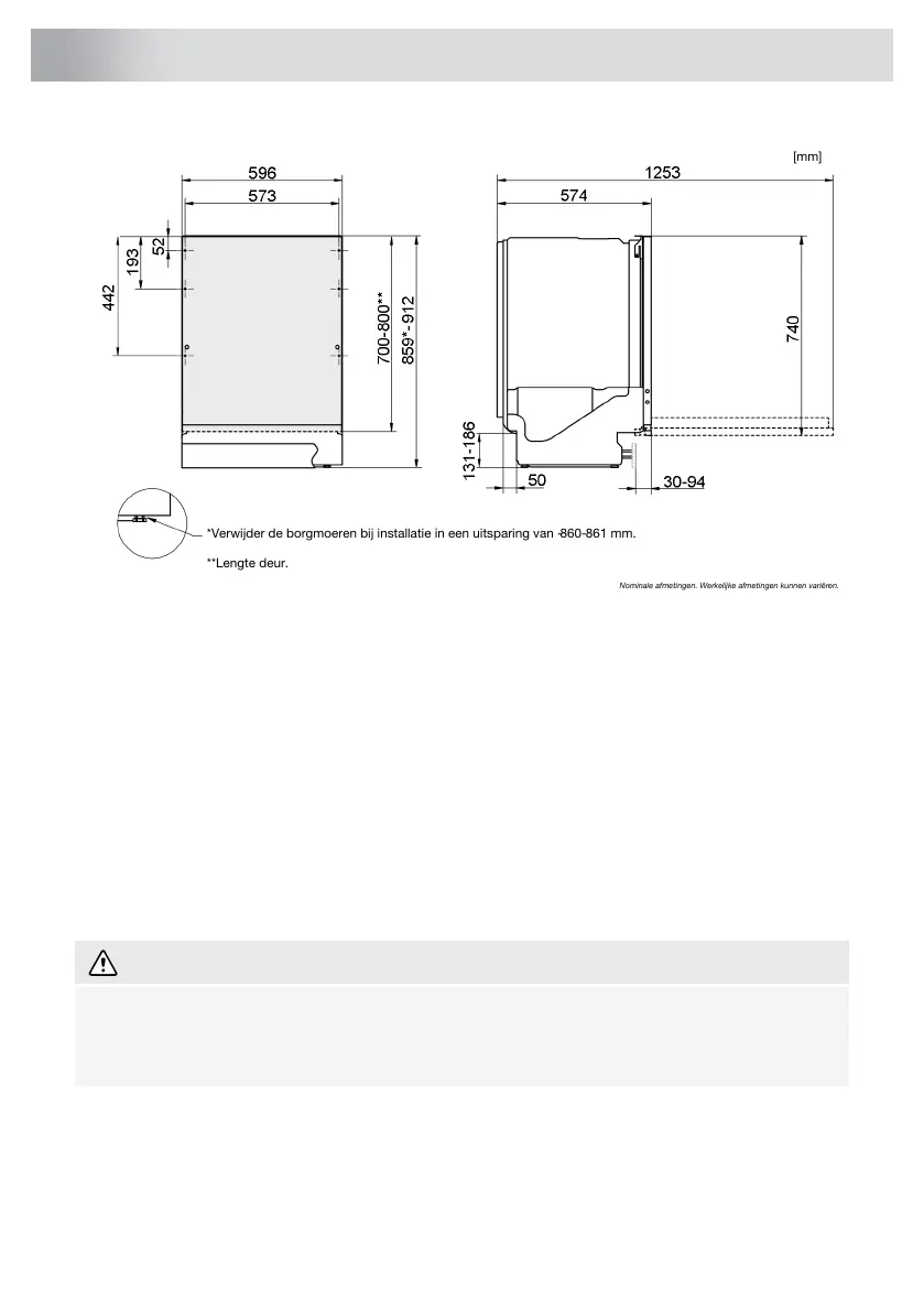 *Verwijder de borgmoeren bij installatie in een uitsparing van -860-861 mm.