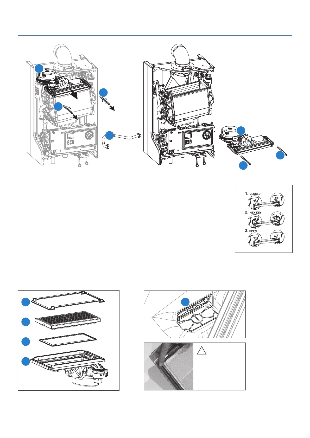 • Check the burner cassette for wear and tear, pollution and any breakages. Clean the burner cassette