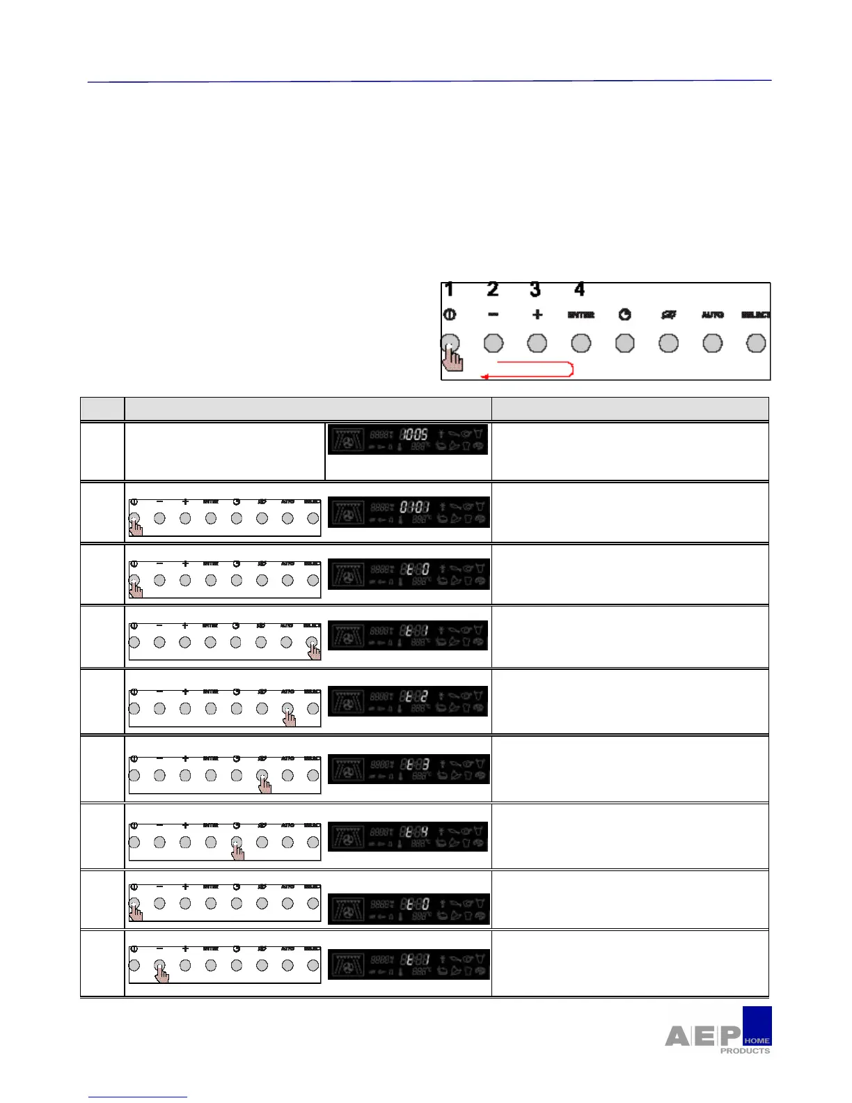• Press successively 1-2-3-4-3-2 and hold 1,