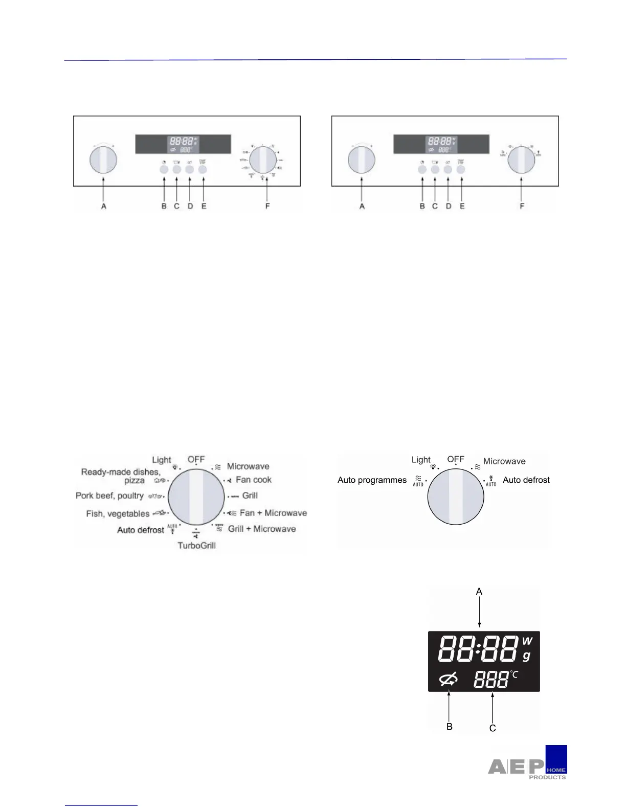 A) The - / + selector knob allows you to adjust the time, the programme length, the power levels, the
