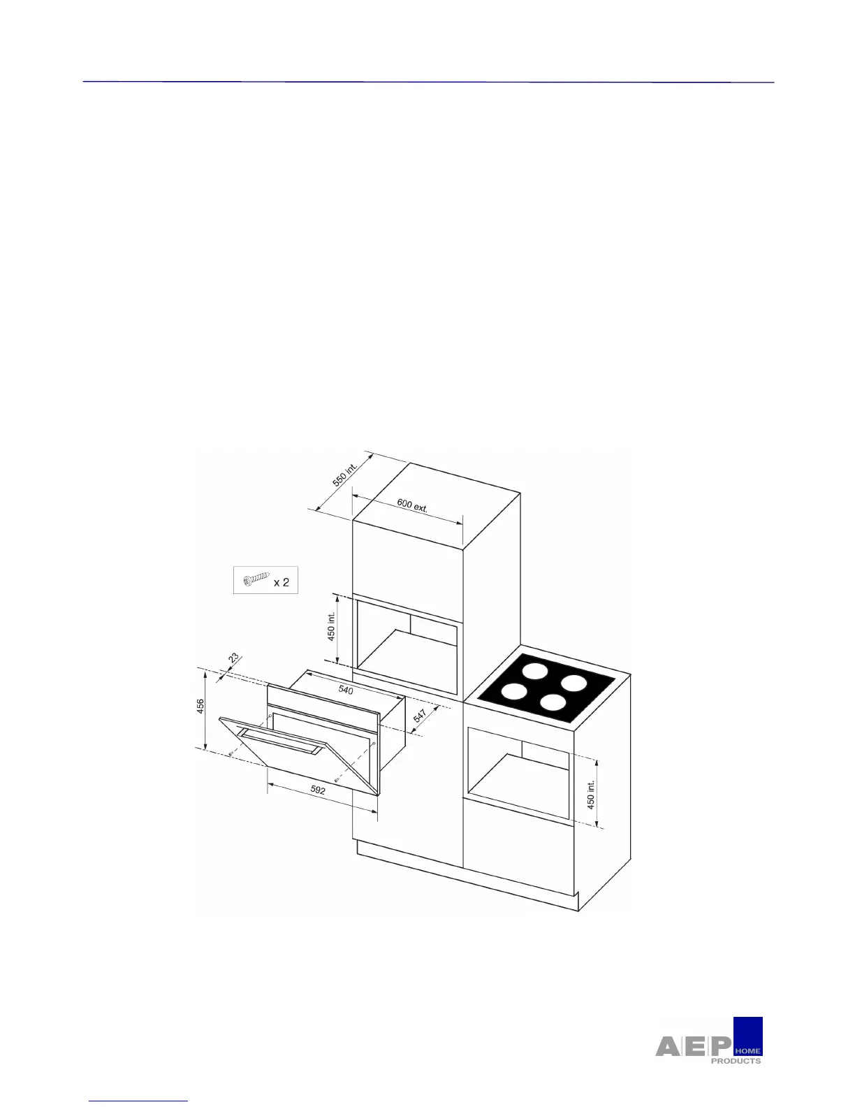 • For more stability, fix the oven in the column housing using 2 screws.