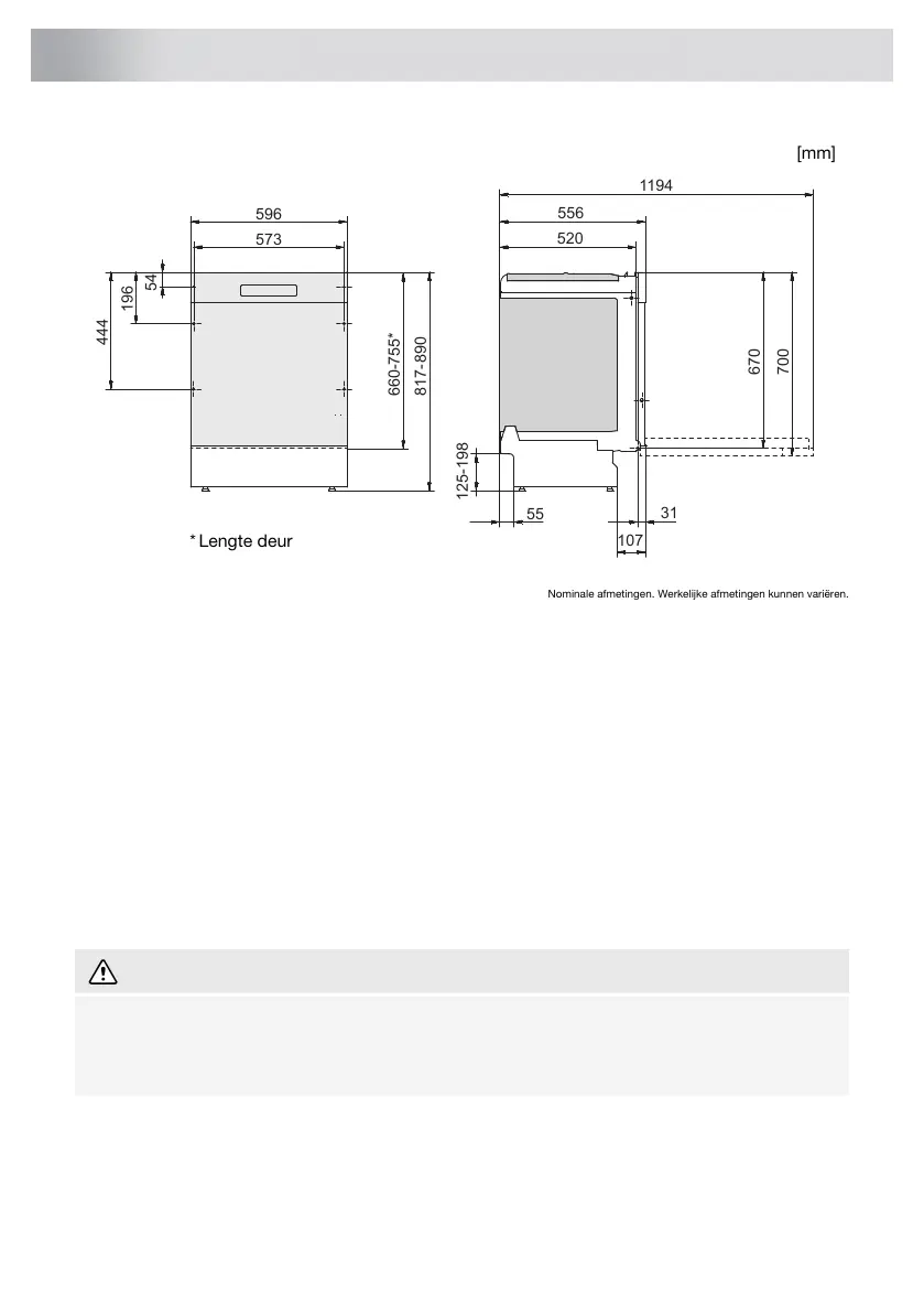 • Aansluitingen op elektriciteit, water en afvoer moeten door een erkende vakman worden