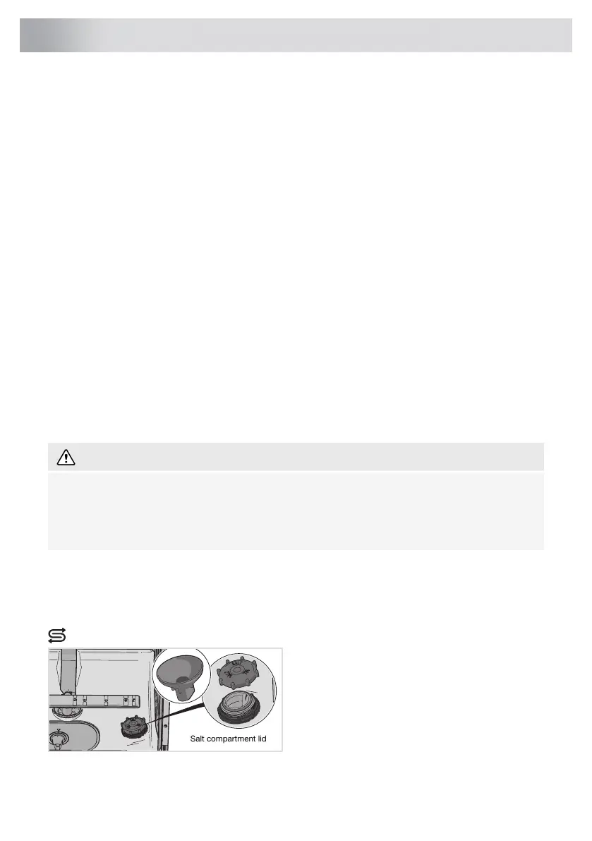 Never run the dishwasher with an empty salt compartment if the water supply has a water hardness