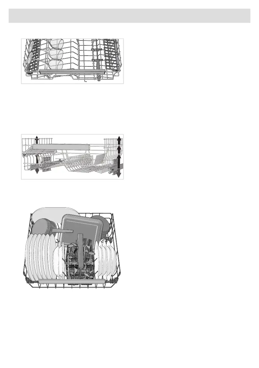 Place plates, side plates, serving dishes, pots and cutlery (in the cutlery basket) in the lower basket.