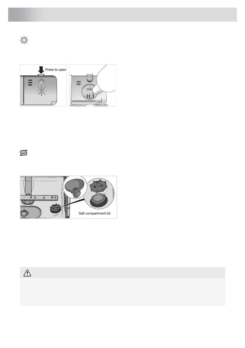 Never pour dishwasher detergent into the salt compartment. This destroys the water softener!