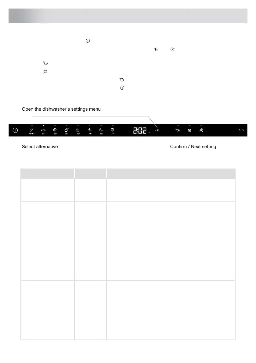 To open the dishwasher's settings menu, press and hold and until SEt is shown on the