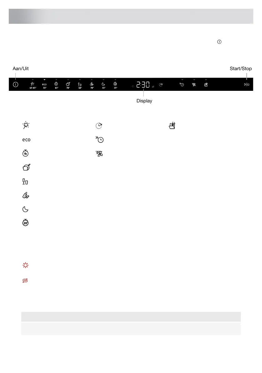 Installeer de vaatwasser, zie hoofdstuk Installatie. Open vervolgens de deur en druk op .