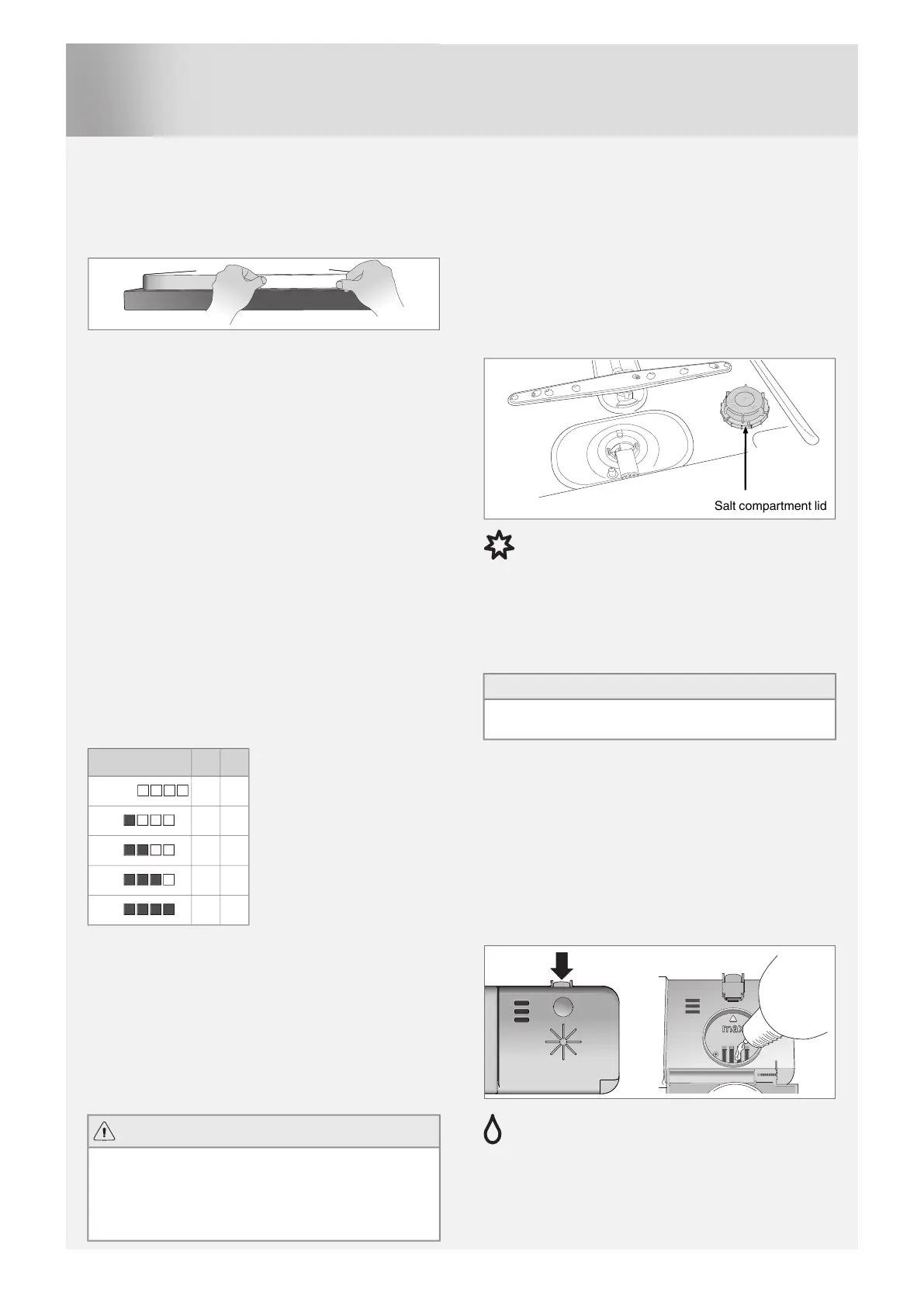 softener. See also the Chapter Settings. Do not forget to put salt