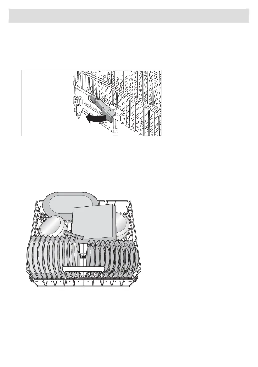 Pour laver des casseroles, abaissez les picots rabattables (supports à assiettes). Libérez les picots