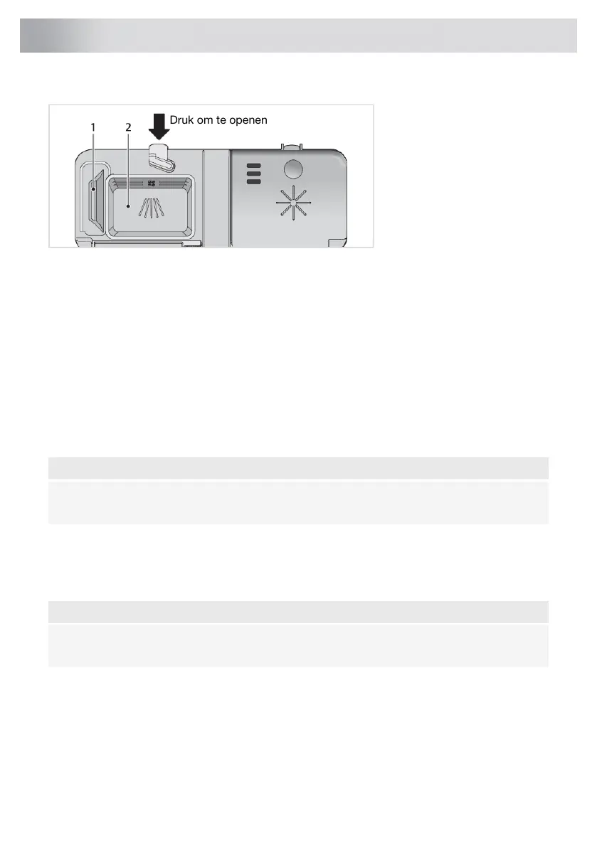 Het vaatwasmiddelbakje moet droog zijn wanneer u er vaatwasmiddel in doet. Er is een bakje voor