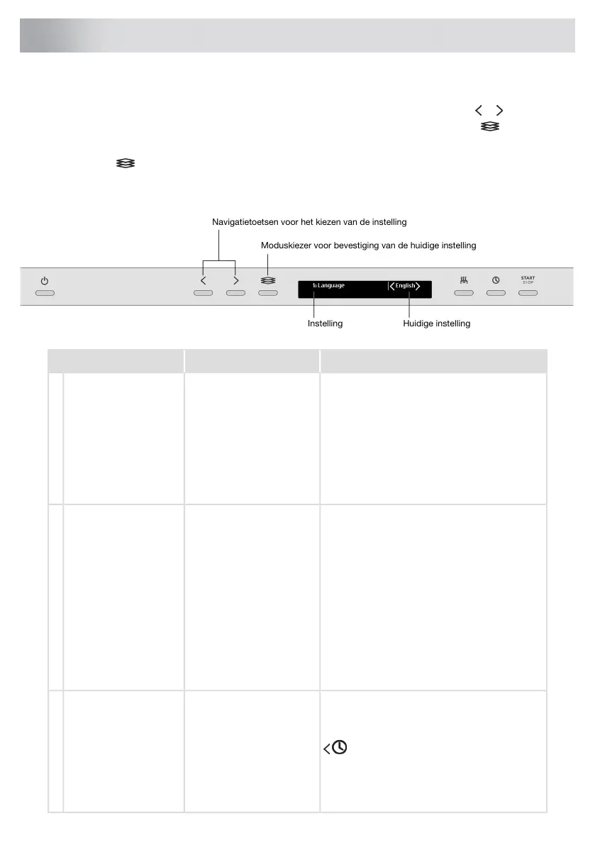 Om het Instellingenmenu van de vaatwasser te openen moet u op de Navigatietoets of drukken