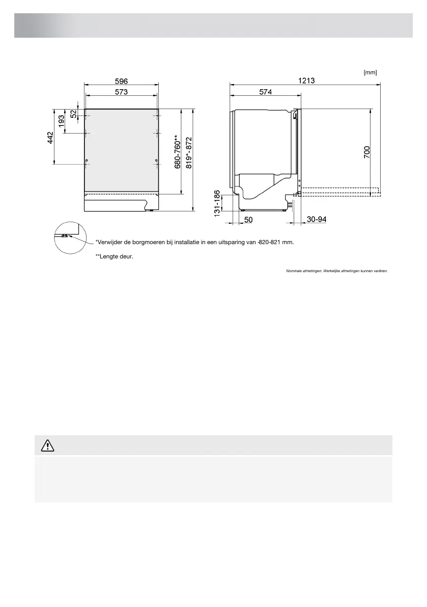 *Verwijder de borgmoeren bij installatie in een uitsparing van -820-821 mm.