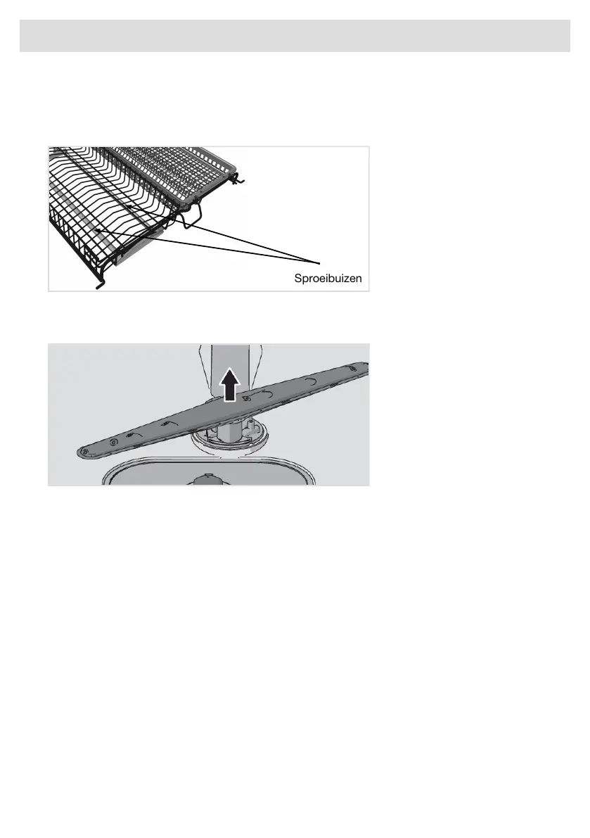 • Trek de onderste sproeiarm recht omhoog om deze te verwijderen.