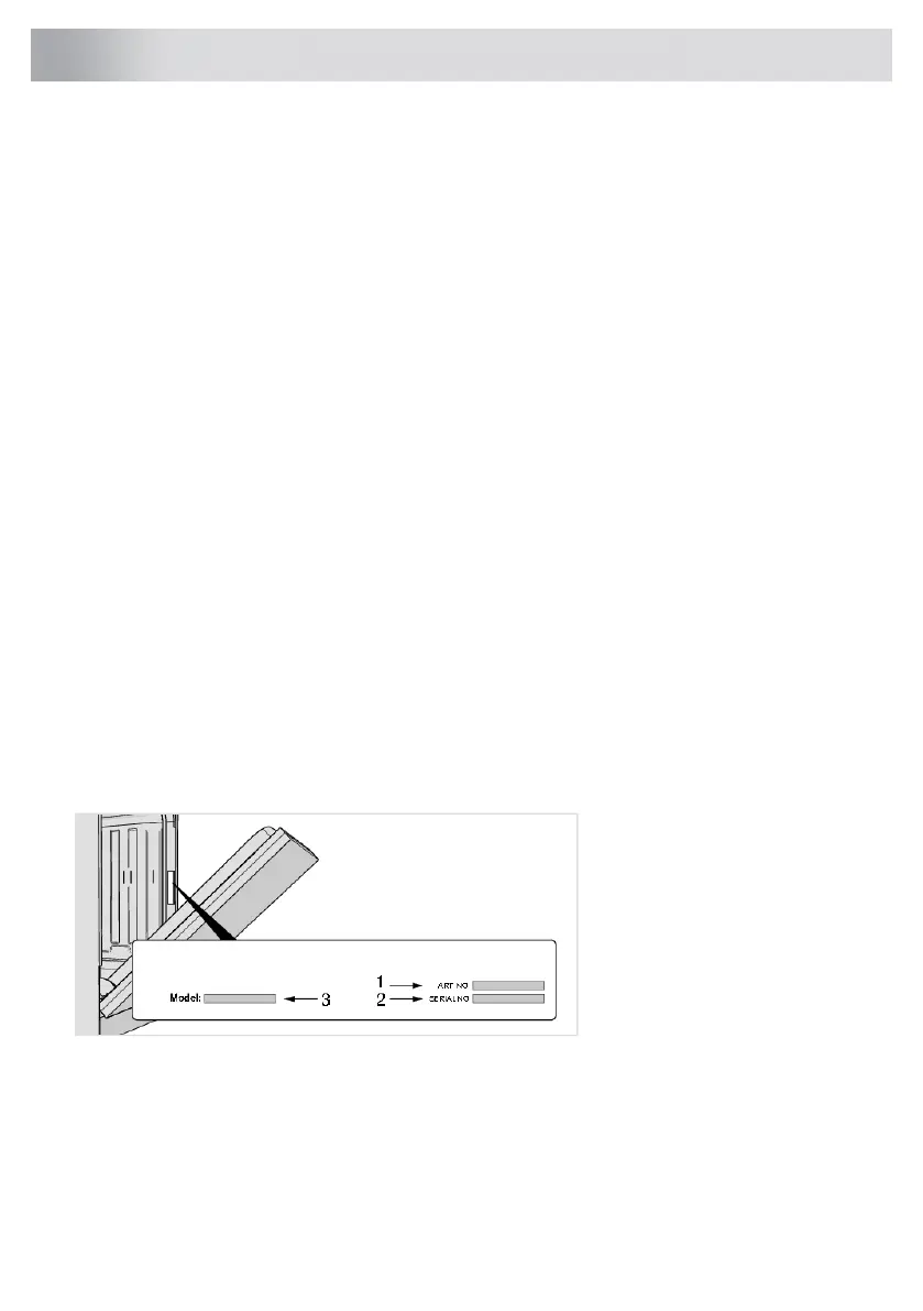 (1), het serienummer (2) en de modelnaam (3).