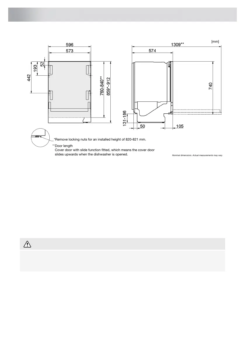 • If the dishwasher is built-in the surrounding furnishings must be resistant to any condensation