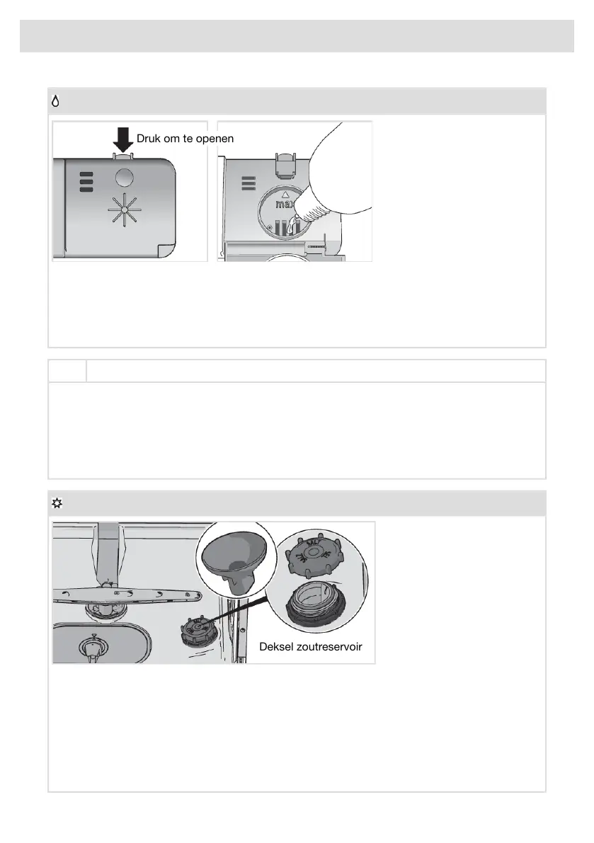 1. Open het deksel van het glansspoelmiddelbakje.