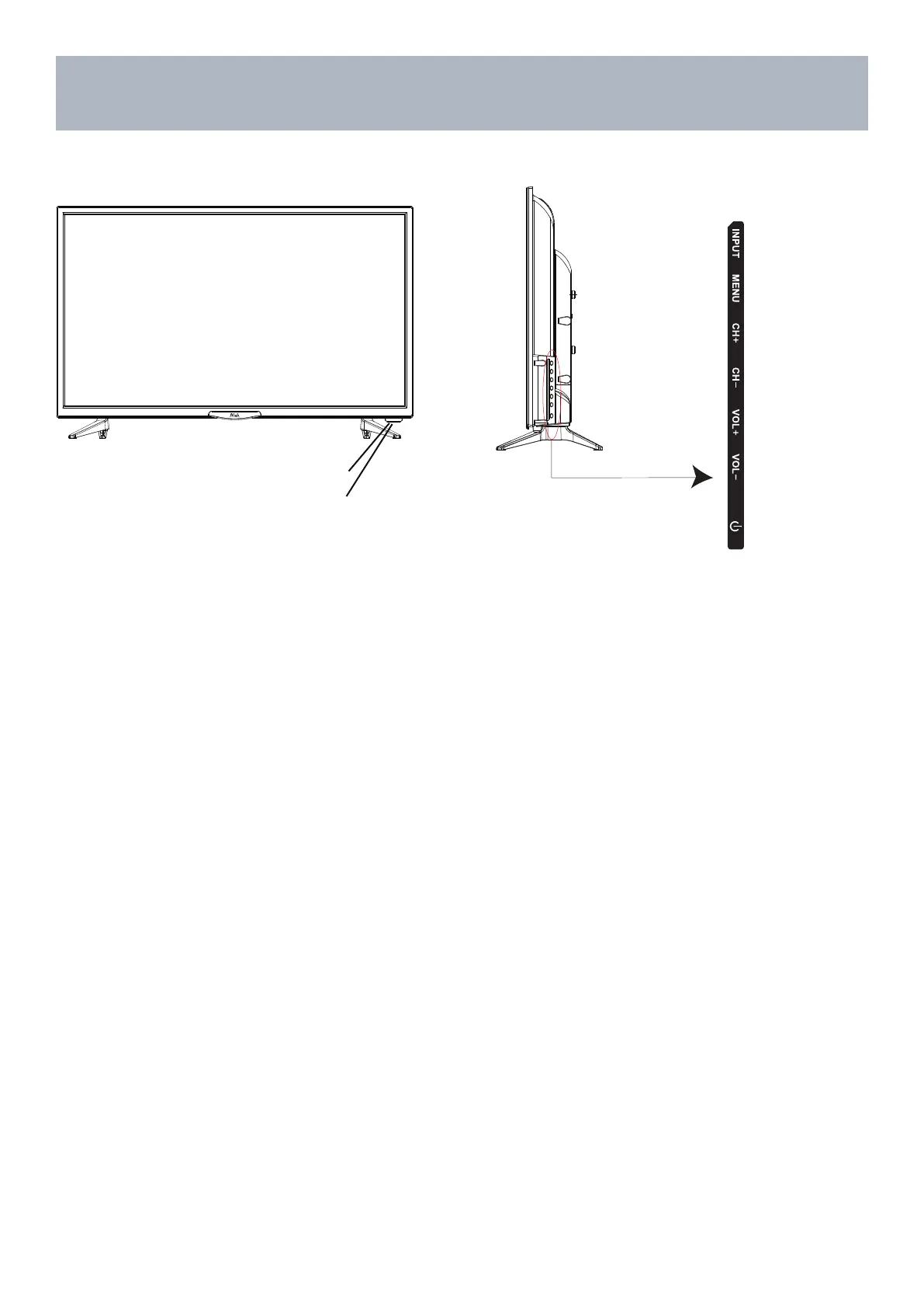 4. Channel (-CH+) - Press the CH- / CH+ buttons to select a channel in the TV mode.