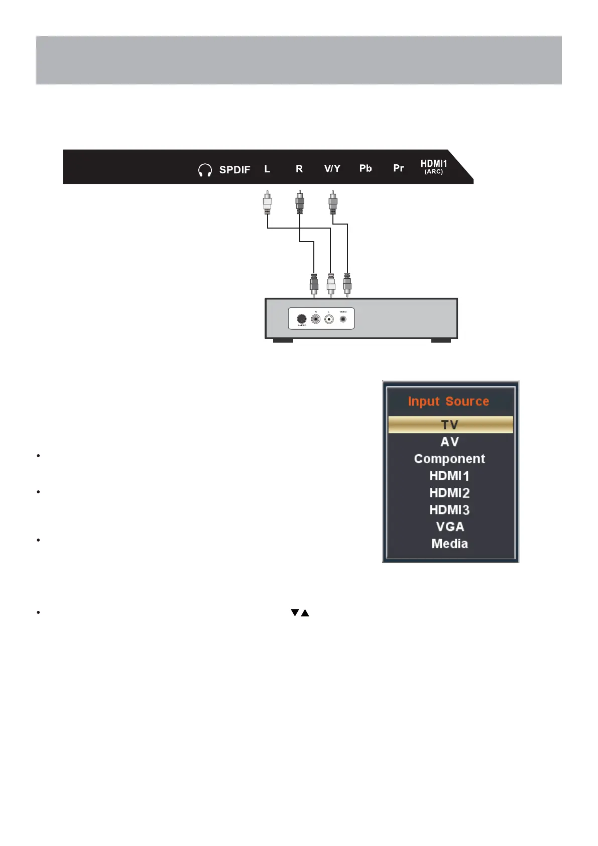 external A / V equipment (i.e.: DVD player, set top box) to AV input