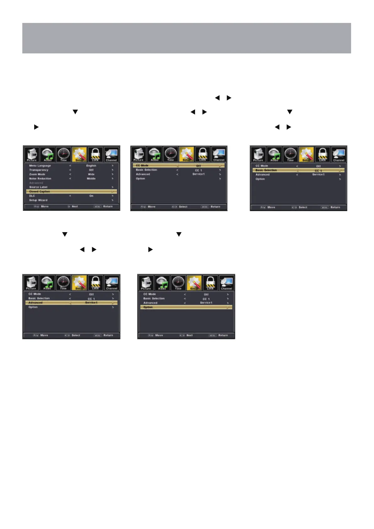 highlight Closed Caption then press