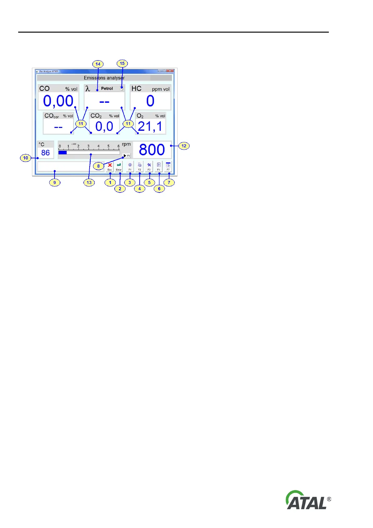 6 - Button: Used to start the emission test