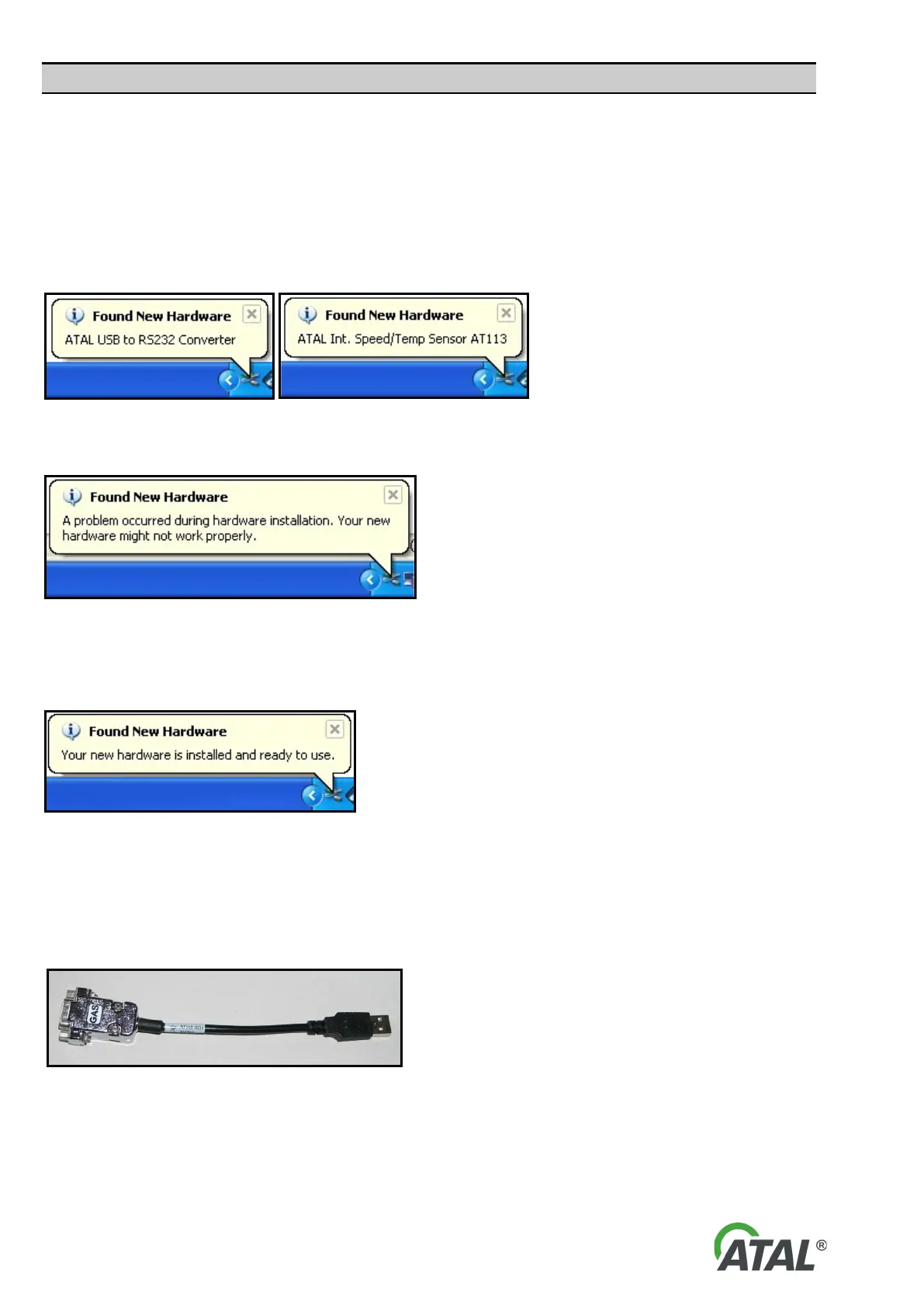device from the ATAL company to your computer, information about new hardware (HW) will appear in the form