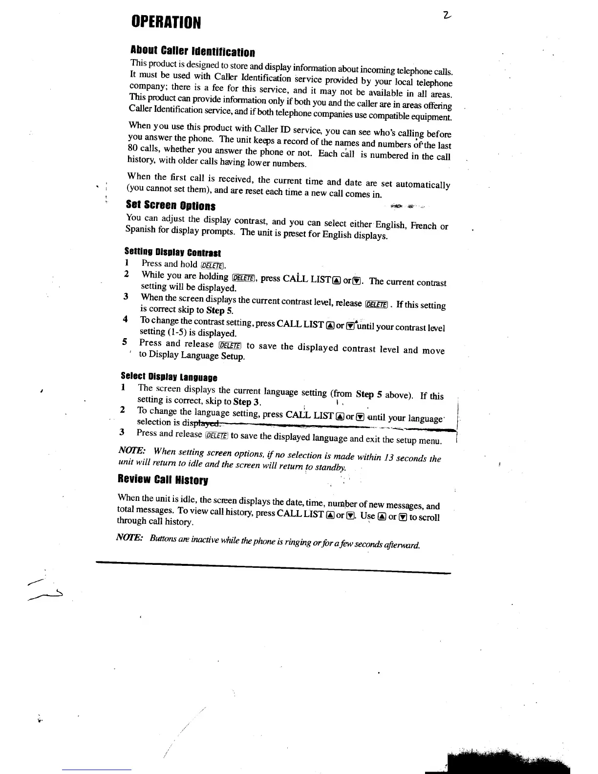 AT&T 326 - Operation; About Caller Identification; Set Screen Options; Review Call History