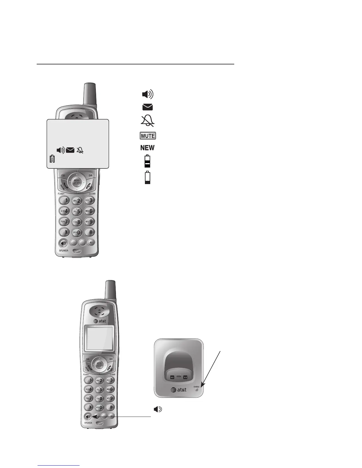 Low battery (flashing); place handset in tel-