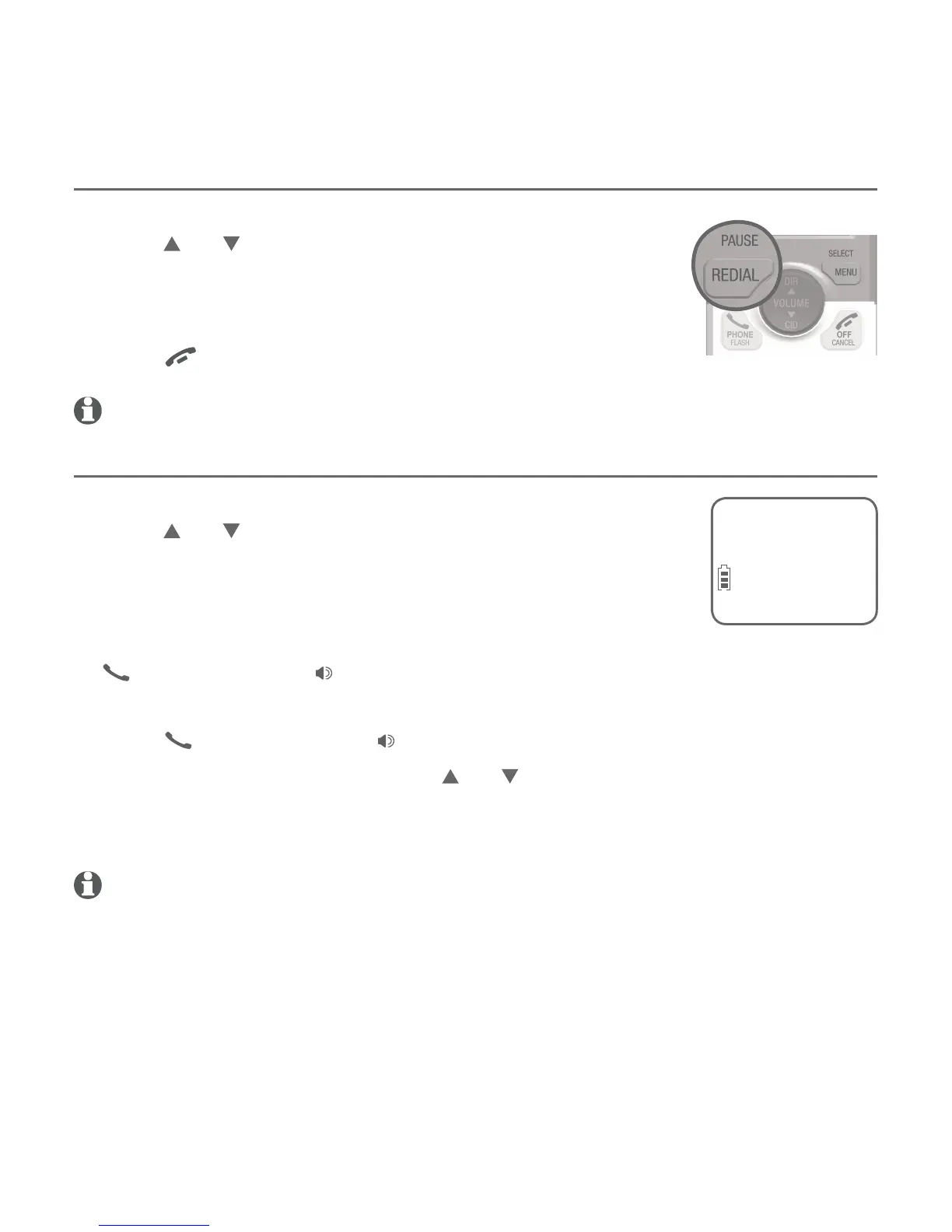 note: If you press REDIAL/PAUSE when the redial list is empty, the handset sounds an