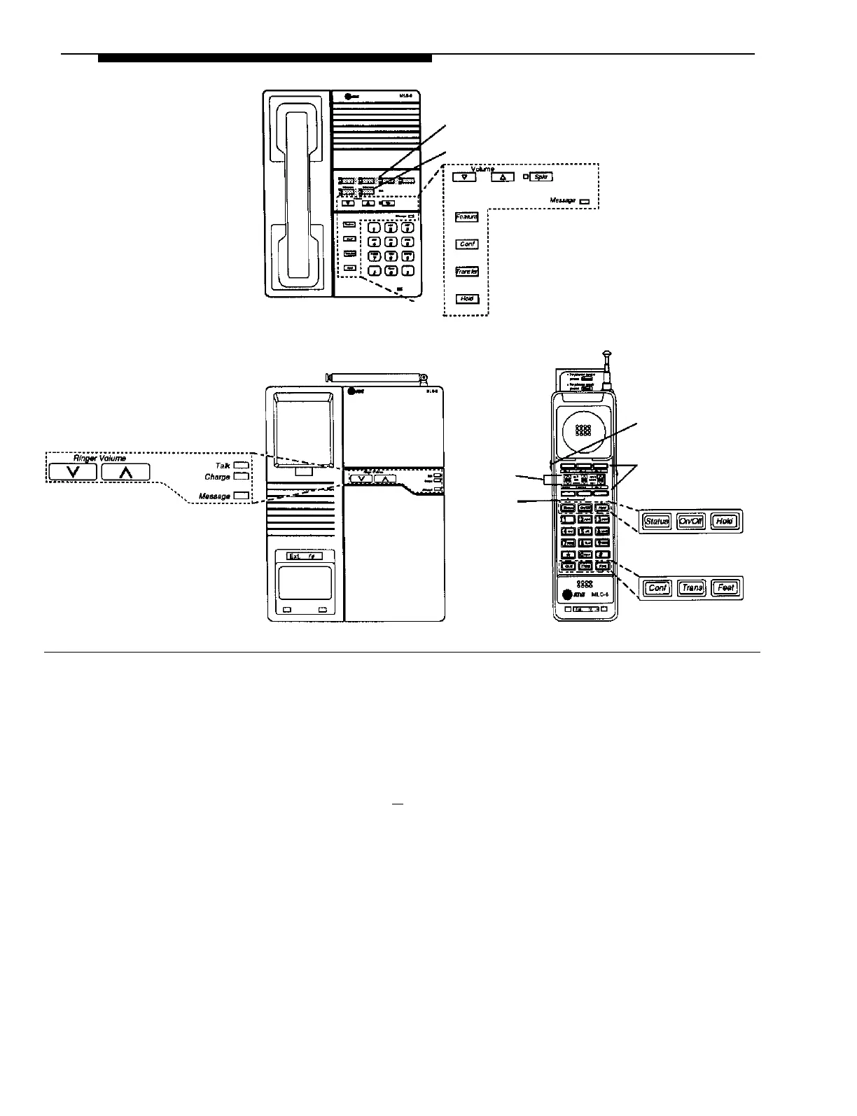 (MLC-6 Handset). To adjust handset volume, slide switch up (high) or down (low).